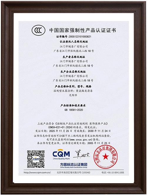 聚氨酯清漆中国国家强制性产品认证证书